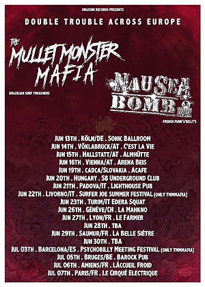 We had the pleasure to join our terrible brasilians friends from The Mullet Monster Mafia, playing a brutal surf music. During their 2 months tour around Europe, we traveled in the same van and played togethers between the 13th of june and the 8th of july, our 2 bands was like an only crazy one ! unforgetable !